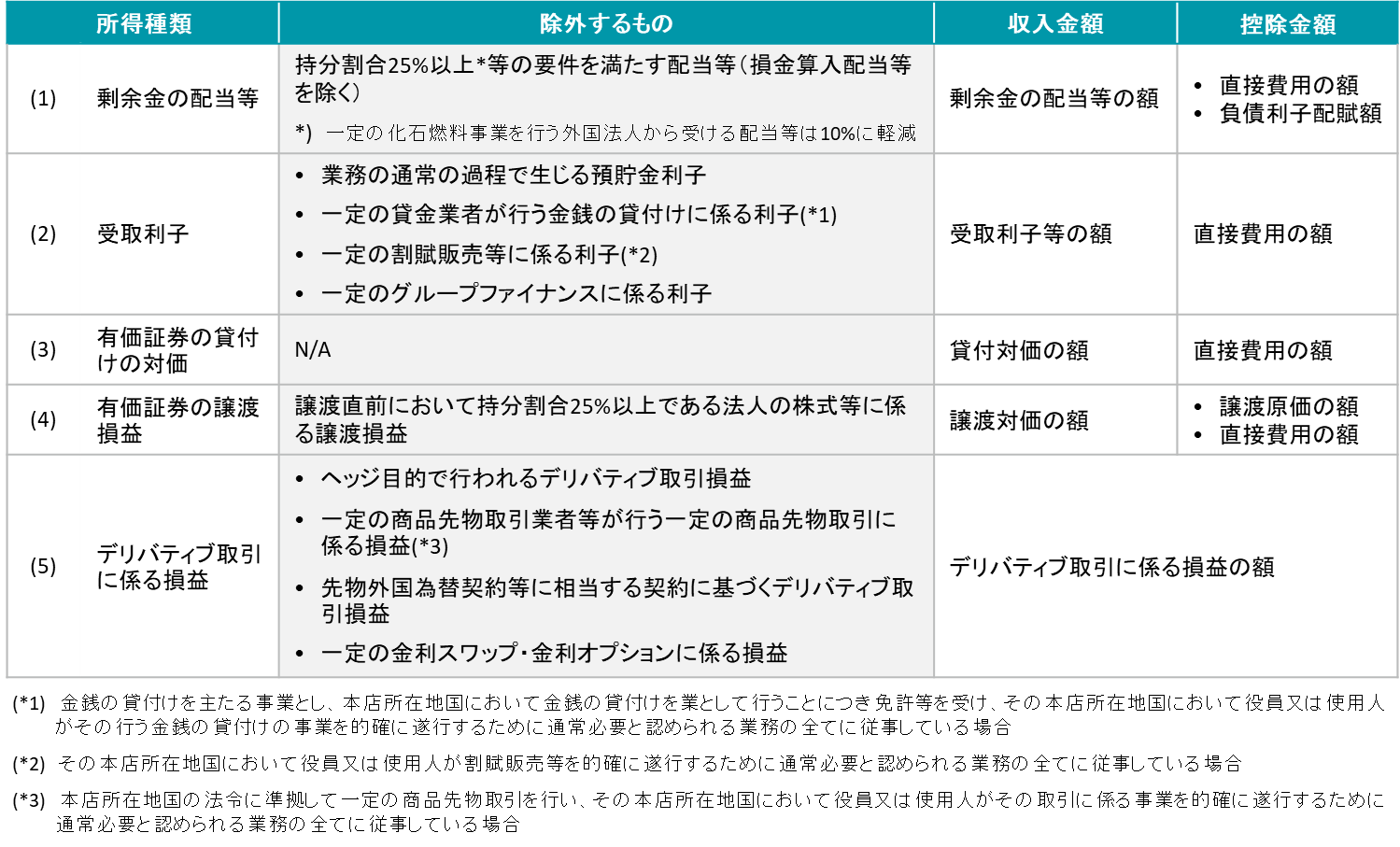 経済活動基準の全てを満たす外国関係会社を部分対象外国関係会社と定義し、部分対象外国関係会社に対する部分合算課税の対象となる所得(受動的所得)は合算課税の対象とされます。